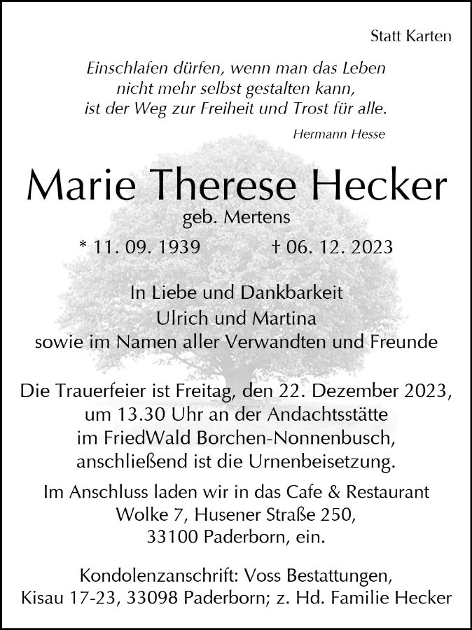 wir wünschen Ihnen für die kommende Zeit viel Kraft und dass es Ihnen gelingt, dankbar auf die positiven Erinnerungen zurückzublicken.