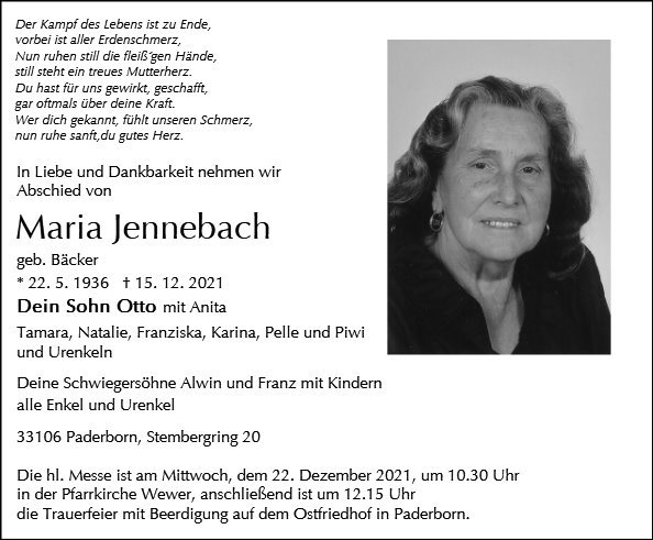 Maria Jennebach geb. Bäcker