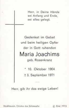 Maria Joachims geb. Rosenkranz