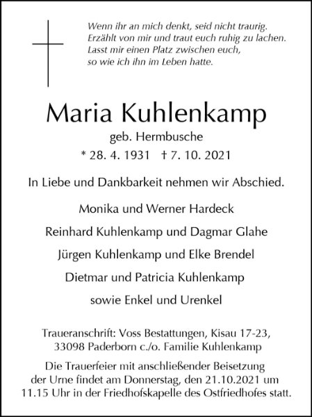 Maria Kuhlenkampgestorben am 7. Oktober 2021