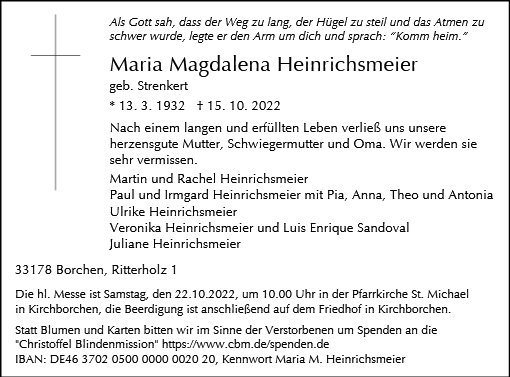 Maria Magdalena Heinrichsmeier geb. Strenkert