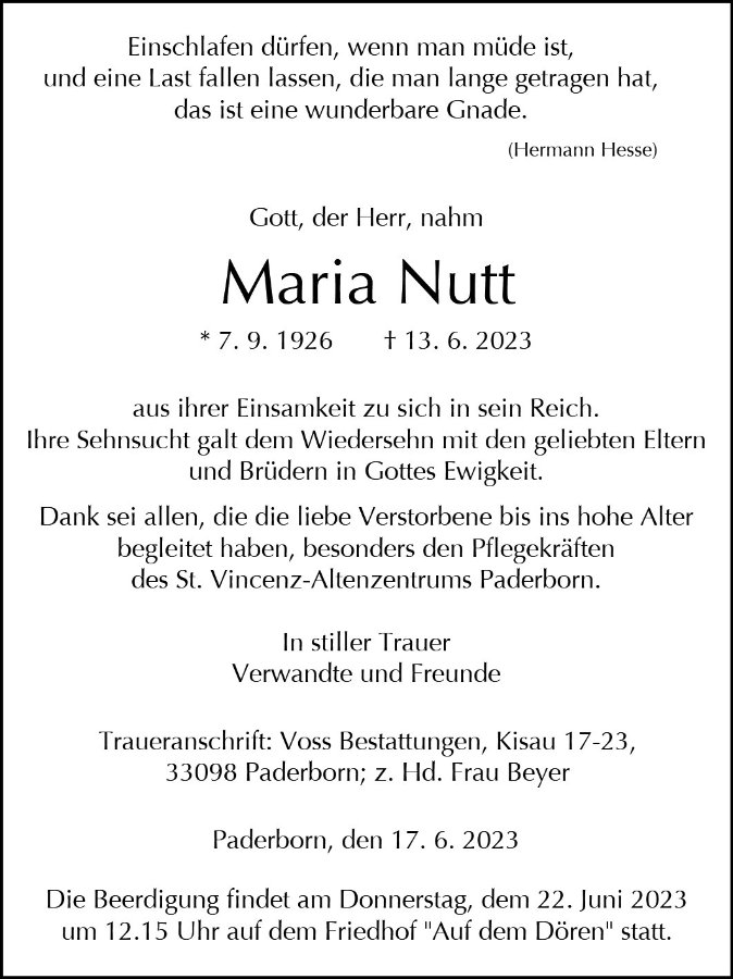 Maria Nuttgestorben am 13. Juni 2023