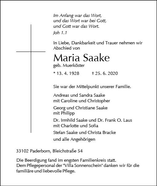 Maria Saake geb. Muerköster