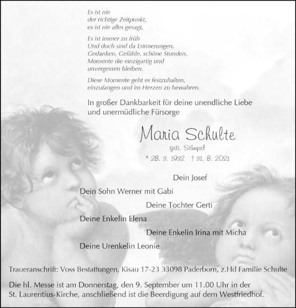 Maria Schultegestorben am 31. August 2021
