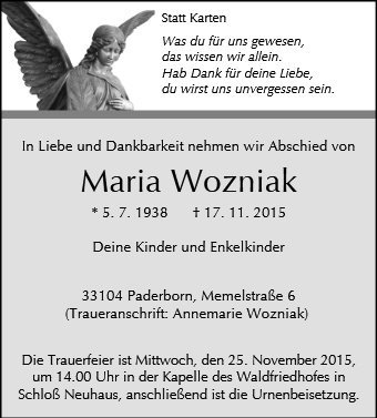 Trauerfeier, Waldfriedhof Schloß Neuhaus