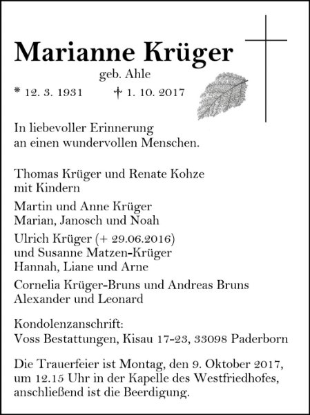 Marianne Krügergestorben am 1. Oktober 2017