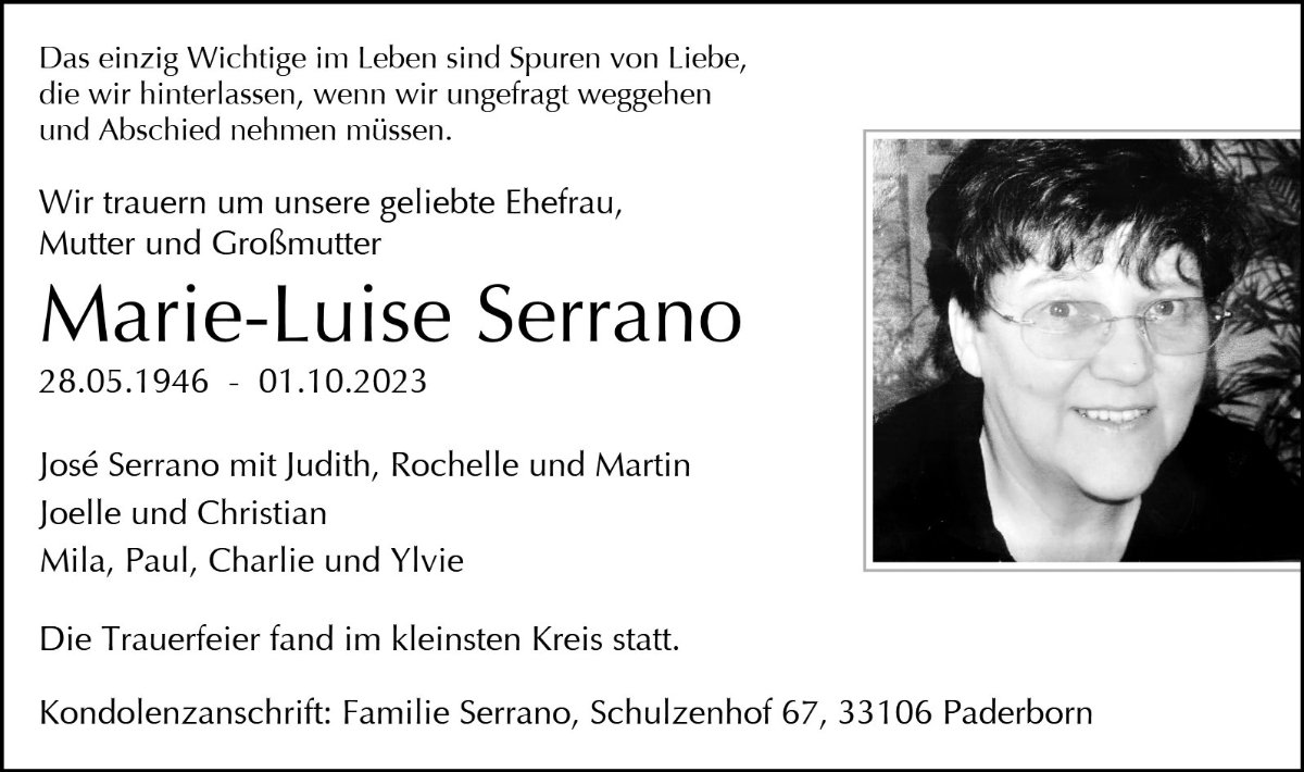 Frau Serrano, Sie waren ein toller und herzensguter Mensch, dafür möchte ich mich bedanken und wünsche Ihnen Ruhe und Frieden, wo auch immer Sie jetzt sind und Stärke Ihren Angehörigen.