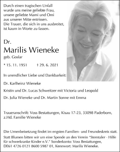 Dr. med. Marilis Wienekegestorben am 29. Juni 2021