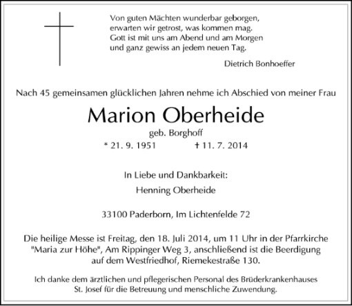 Marion Oberheide geb. Borghoff