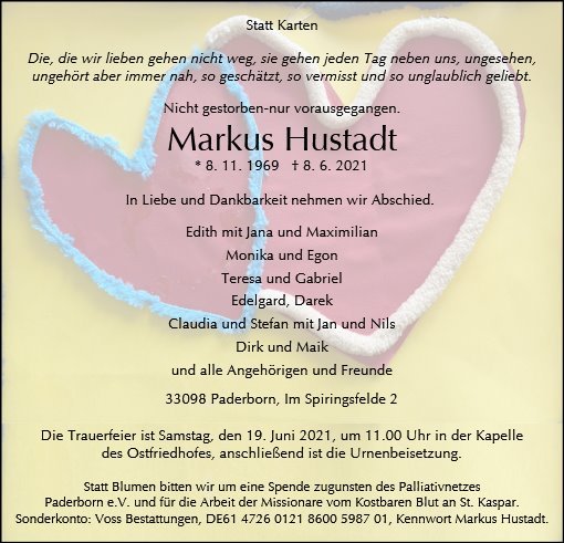 mit dieser Kerze wollen wir Euch zeigen, dass wir in dieser schweren Zeit an Euch denken, für Euch beten, uns an Markus erinnern.