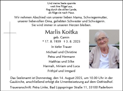 da ich aus gesundheitlichen Gründen nicht an der Beisetzung