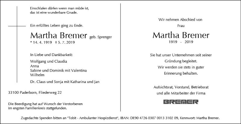 Martha Bremer geb. Sprenger