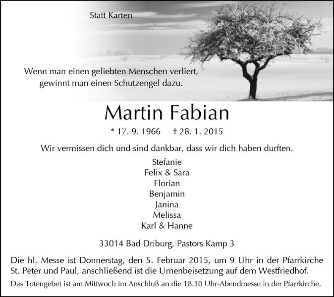 Ich wünsche Euch allen ganz viel Kraft für die kommende Zeit ohne Martin an Eurer Seite, für immer aber in Euren Herzen und sende Euch folgende Zeilen zum Gedenken: