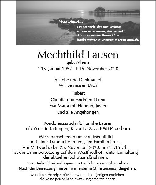 in dieser Zeit des Schmerzes wünschen wir Ihnen Kraft, den Verlust im Kreise Ihrer Liebsten zu verarbeiten. Als Zeichen unserer Anteilnahme und des Gedenkens entzünden wir dieses erste Licht.