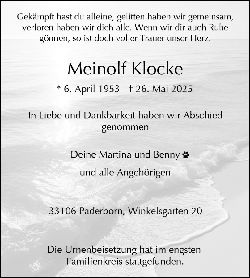 Mit tiefem Bedauern haben wir vom Tod von Meinolf erfahren.