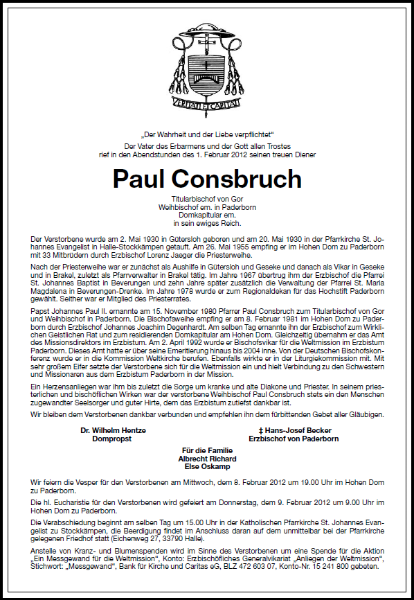 Weihbischof Paul Consbruchgestorben am 1. Februar 2012
