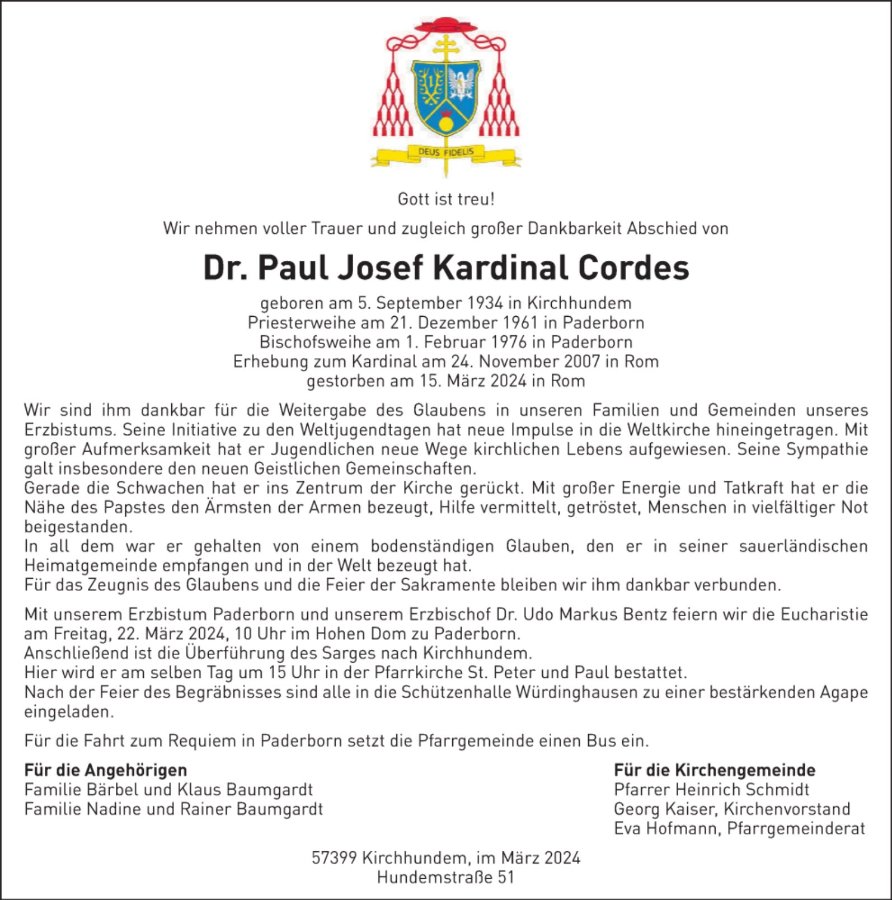 Kurienkardinal Paul Josef Cordes