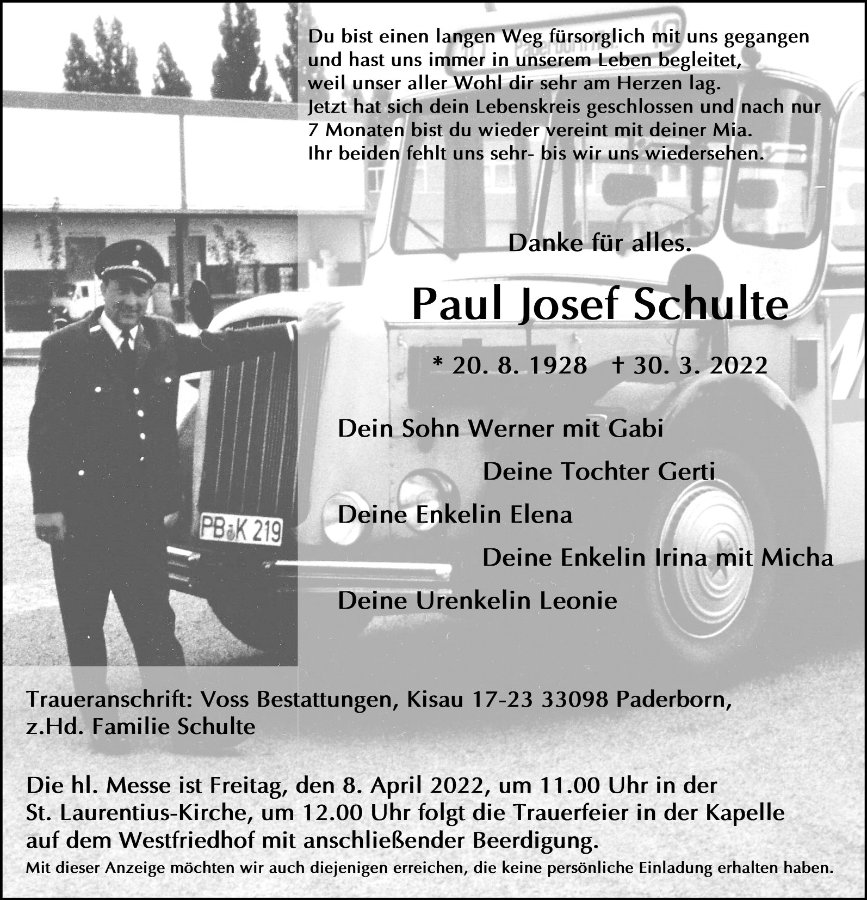 gestorben am 30. März 2022 in Bad Wünnenberg