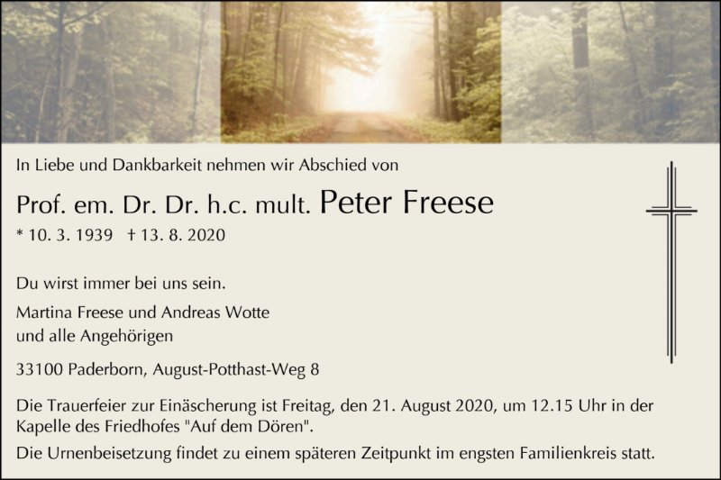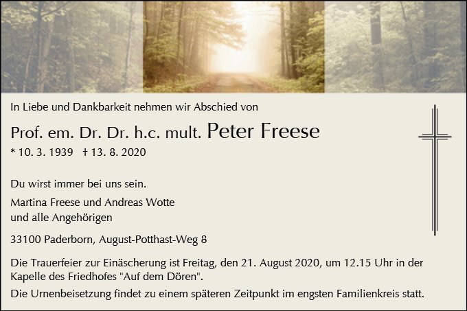 Prof. em. Dr. Dr. h.c. mult. Peter Freese