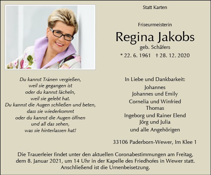 Regina Jakobs geb. Schäfers