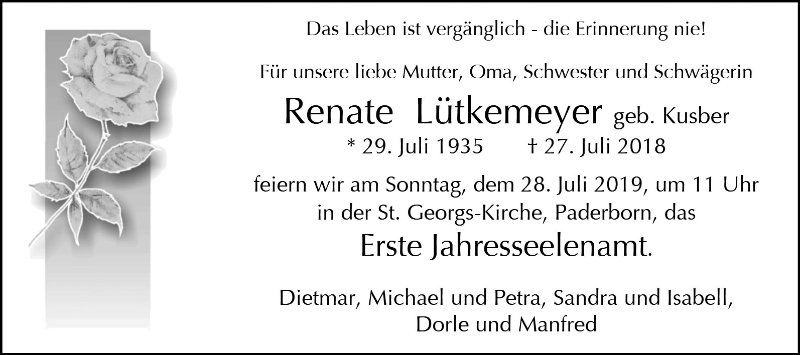 Renate Lütkemeyergestorben am 27. Juli 2018