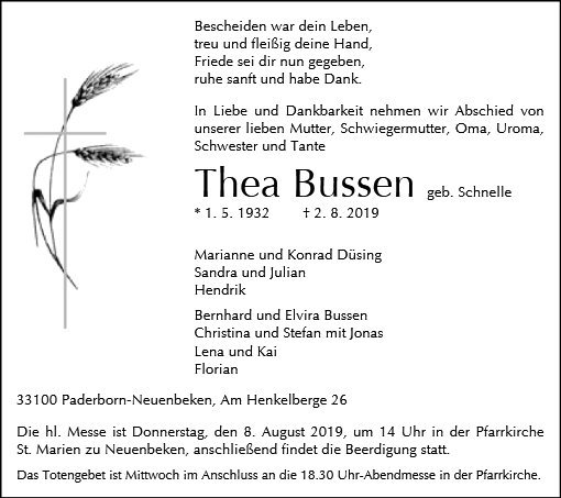 Jahresgedächtnis, Pfarrkirche Neuenbeken