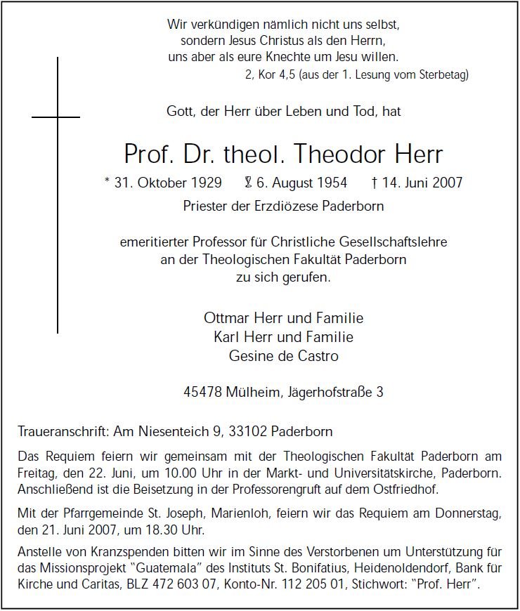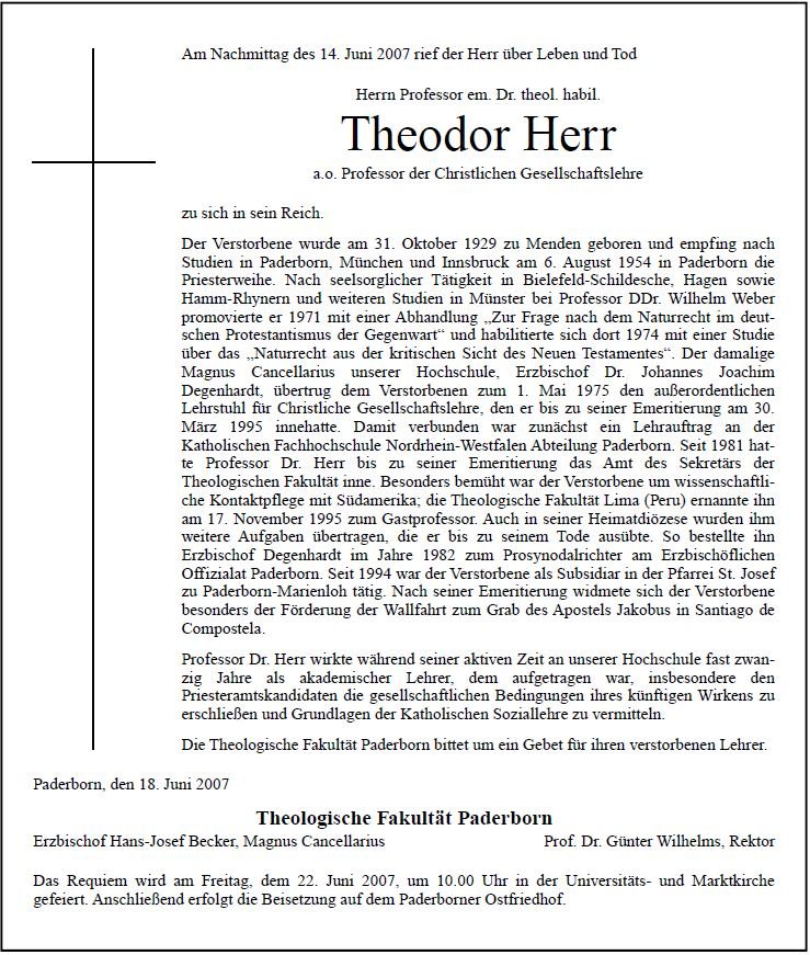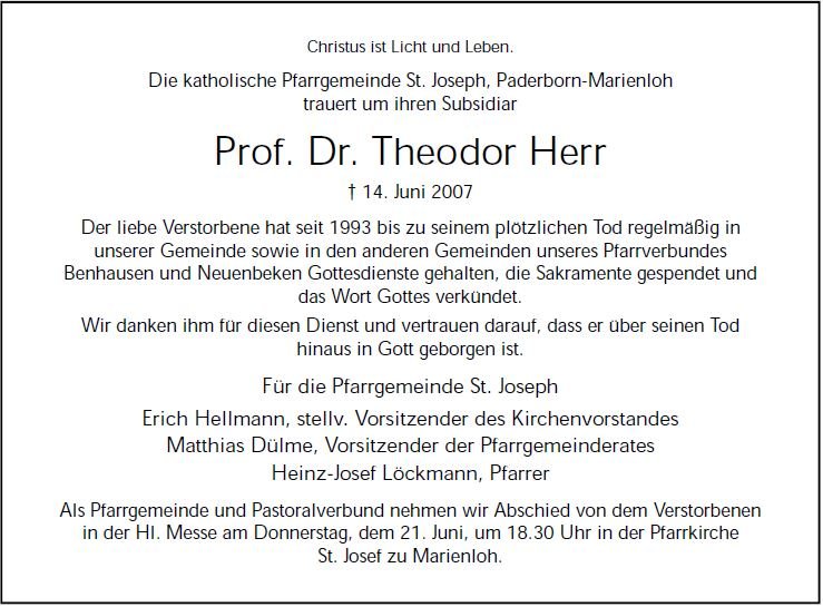 Prof. Dr. Theo Herrgestorben am 14. Juni 2007