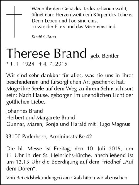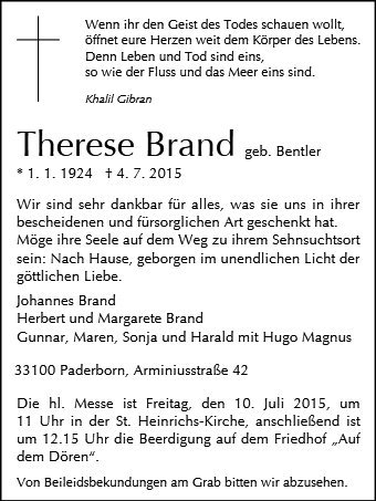 Therese Brand geb. Bentler