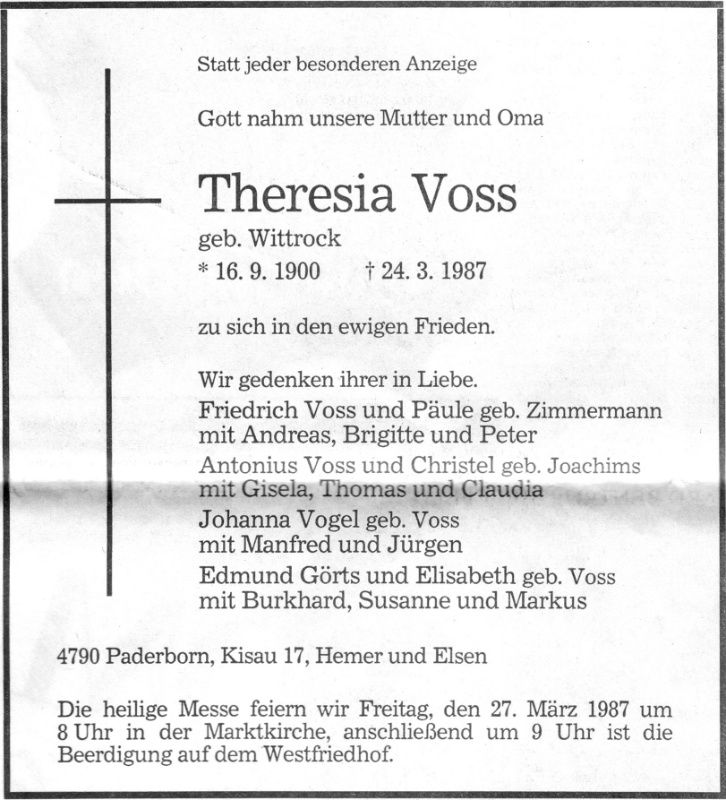 Theresia Voss geb. Wittrock