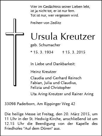 Ursula Kreutzer geb. Schumacher