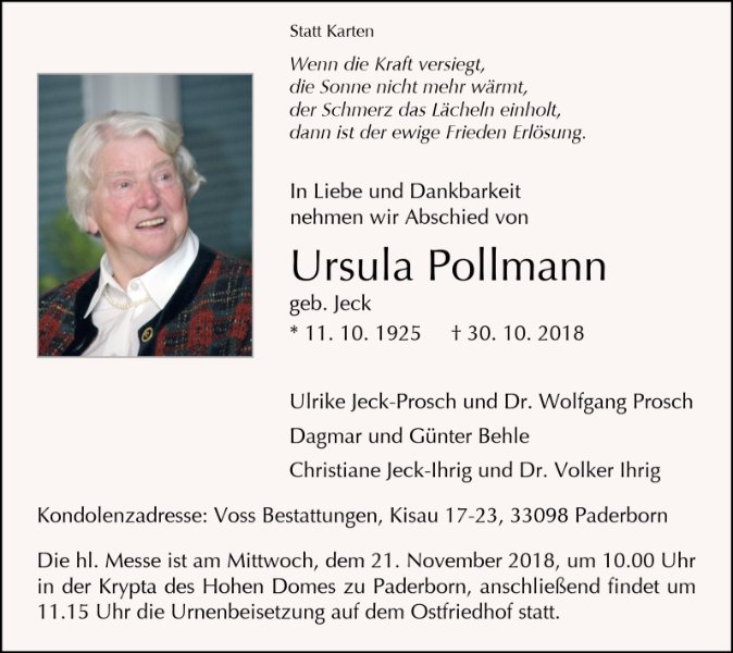 Ursula Pollmanngestorben am 30. Oktober 2018