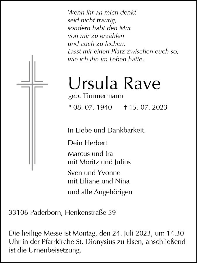 Ursula Ravegestorben am 15. Juli 2023