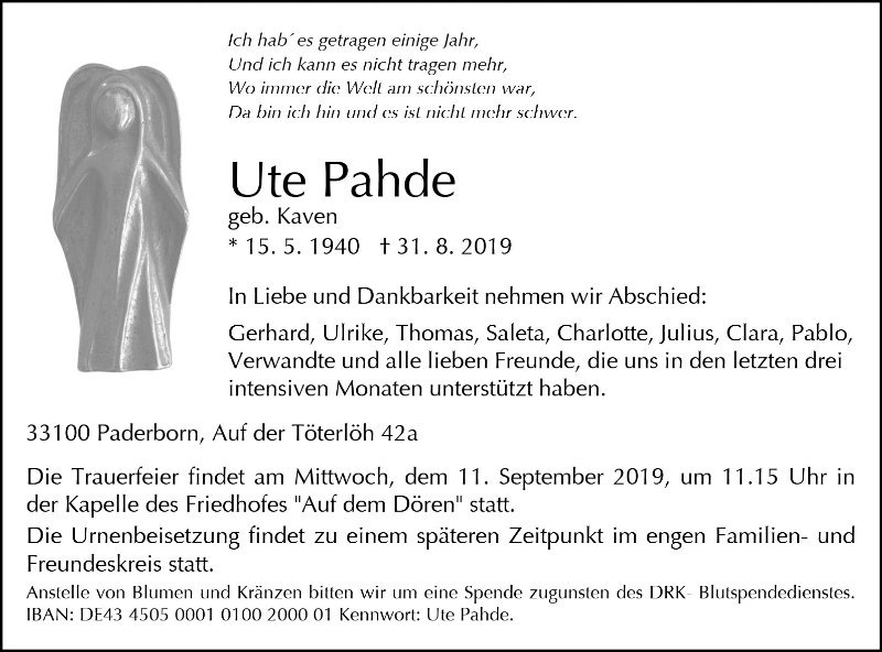 wir wünschen Ihnen von Herzen viel Kraft, dass Sie Menschen um sich haben, die Ihnen in dieser schweren Zeit beistehen und Halt geben.