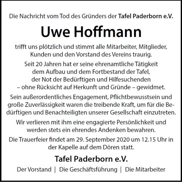 Uwe Hoffmanngestorben am 21. September 2020