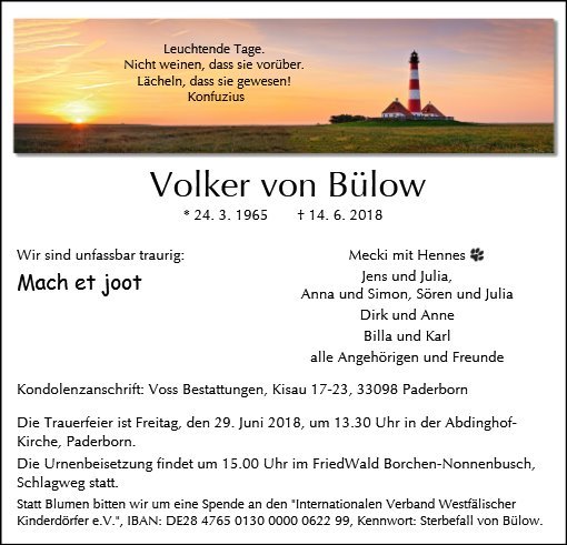 Die Nachricht von Volkers Tod ist unfassbar. Ich erinnere mich immer wieder gerne an unsere gemeinsame Tennis-Zeit, auch wenn das schon fast 25 Jahre her ist. Er hat mich und viele Andere damals als unser langjähriger Trainer geprägt. Schade und traurig, dass er diese Lebensaufgabe — junge Menschen sportlich und erzieherisch zu begleiten — nicht mehr fortsetzen kann.