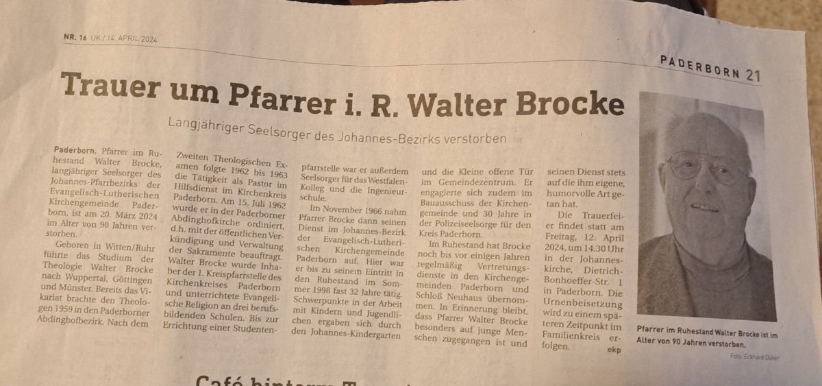 Pfarrer Walter Brockegestorben am 20. März 2024