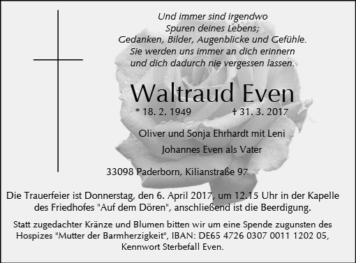 Unser aufrichtiges Beileid, haben heute erfahren das Waldtraud leider verstorben ist.