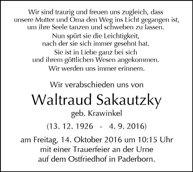 Waltraud Sakautzky geb. Krawinkel