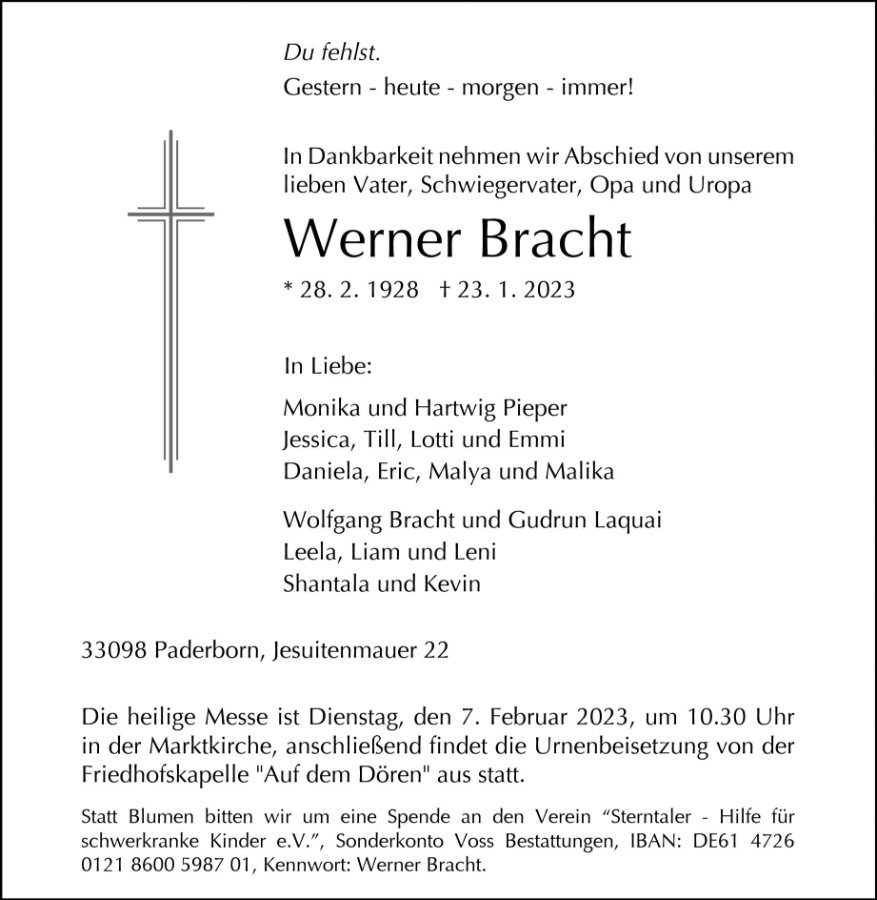 Werner Brachtgestorben am 23. Januar 2023