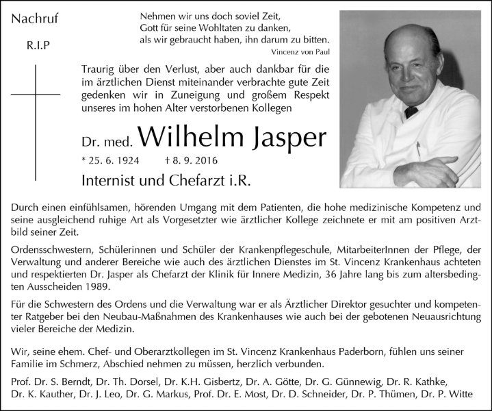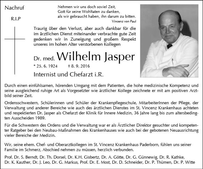 Internist und Chefarzt, Dr. med. Wilhelm Jasper