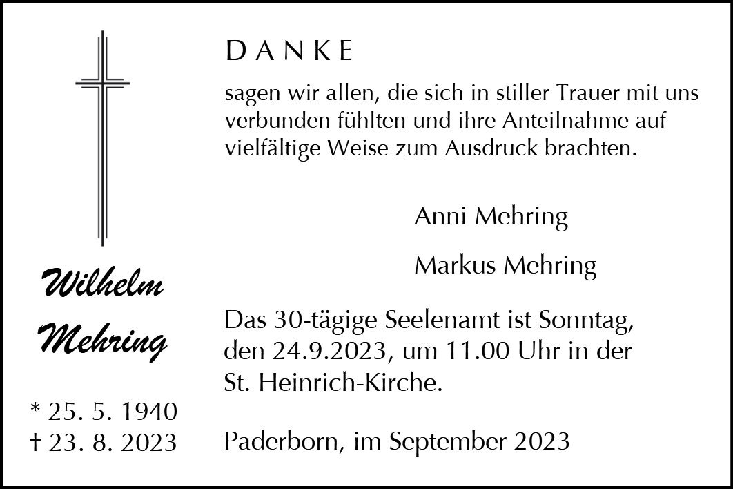 Wilhelm Mehringgestorben am 23. August 2023