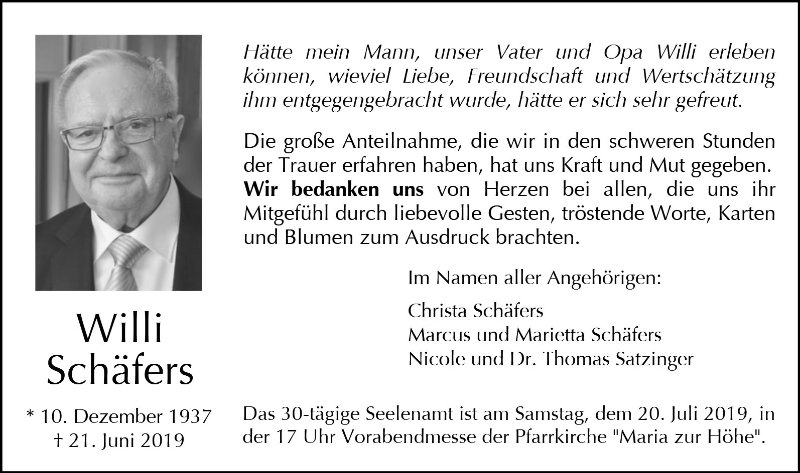 Wilhelm Schäfersgestorben am 21. Juni 2019