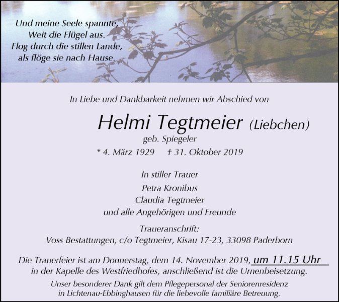Trauerfeier, Westfriedhof Paderborn