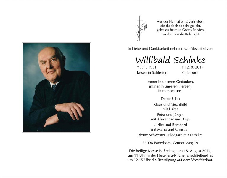 Willibald Schinkegestorben am 12. August 2017