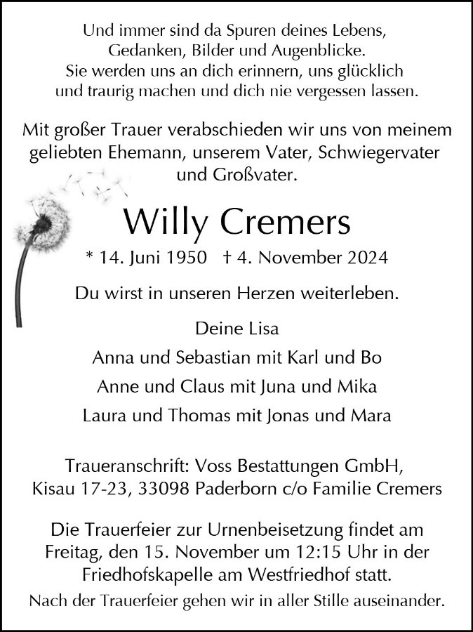 Willy Cremersgestorben am 4. November 2024