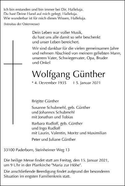 Wolfgang Günthergestorben am 5. Januar 2021
