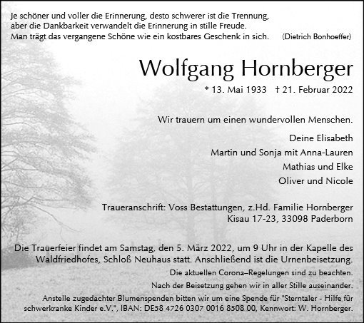wir wünschen Ihnen für die kommende Zeit viel Kraft und dass es Ihnen gelingt, dankbar auf die positiven Erinnerungen zurückzublicken.