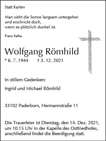 geboren am 6. Juli 1944 in Neuhaus, jetzt Paderborn