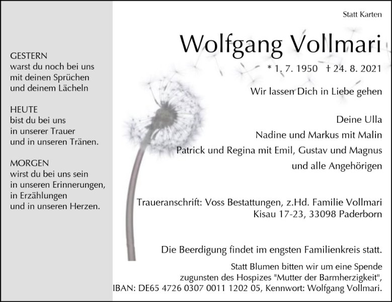 Sehen Sie hier die Termine der Abschieds- und Trauerfeierlichkeiten.