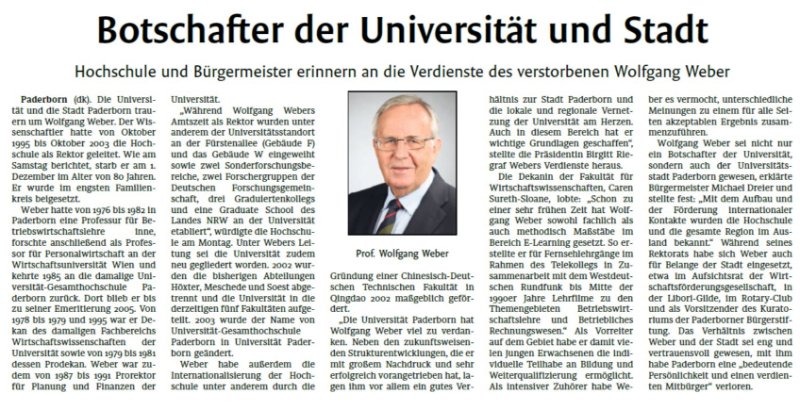 Prof. Dr. rer.pol.habil. Wolfgang Webergestorben am 1. Dezember 2019